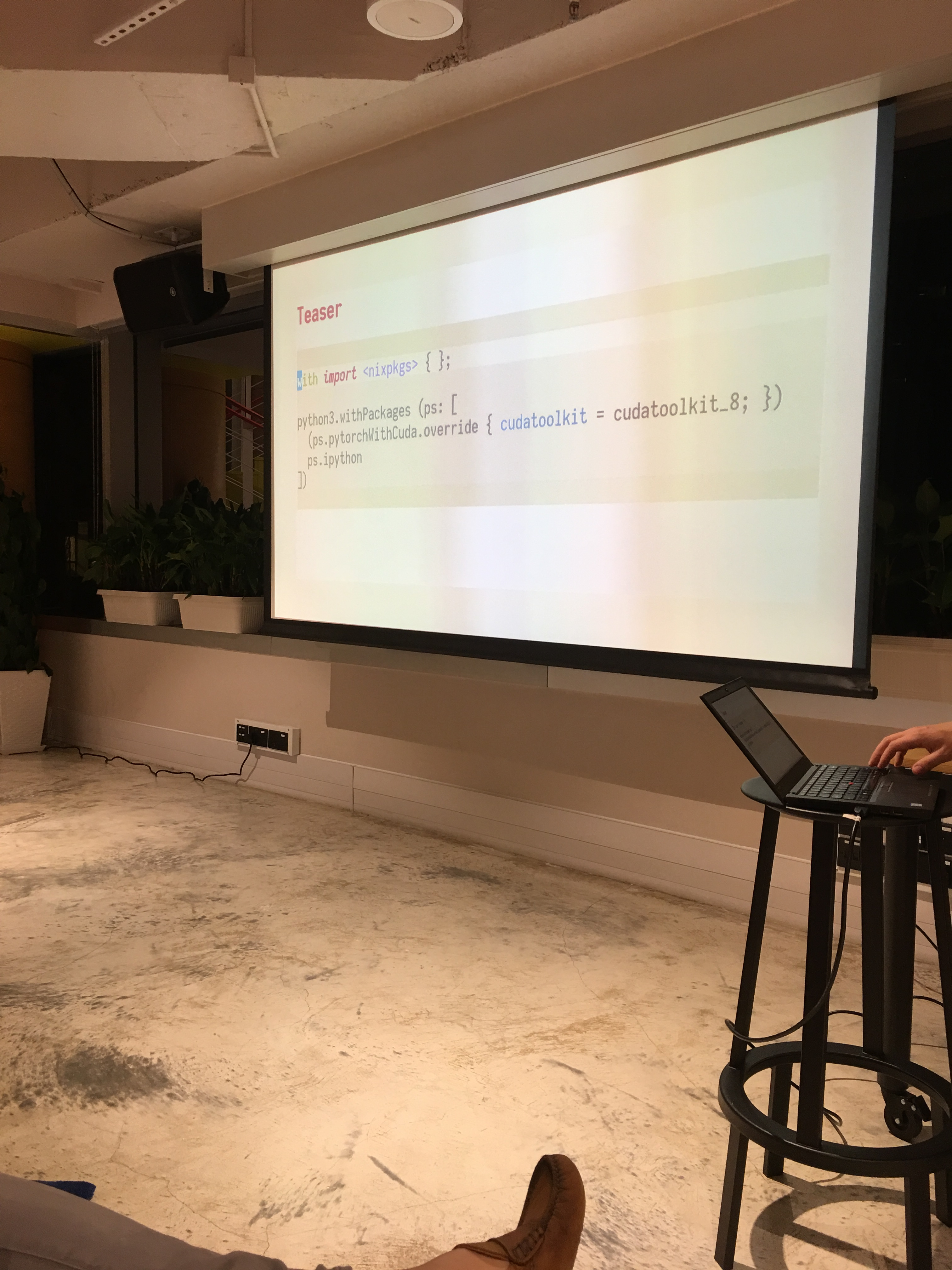 Mathis live-demoed nix. From his command lines, the package manager seems to do the job perfectly for fetching the relevant packages for TensorFlow, etc. I’m not very knowledgeable on the DevOps side of Machine Learning, but it appears to me as an alternative solution to Docker, with more flexibility and compositionality than Docker, according to Mathis. Mathis also warned about the steep learning curve for mastering nix.