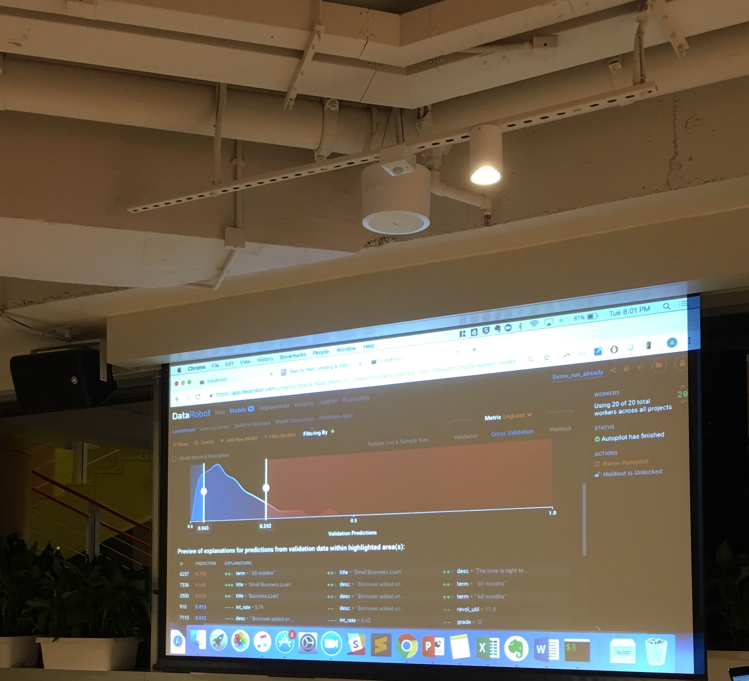 Alexandre talked about AutoML, i.e. Automated Machine Learning. Basically, trying to make Kris useless (joking, am I?). So far, the state of the art cannot replace totally a good data scientist with domain expertise, but can ease and improve his productivity a lot! Alexandre live-demoed the DataRobot solution on a loan dataset. Pretty Impressive. Neat and beautiful visualizations. Moving a model from development to production seems seamless and effortless. If you are doing Machine Learning on DataFrames (Kaggle-style), the DataRobot solution is worth a look. Alexandre told me they also release a time-series version of their solution recently.